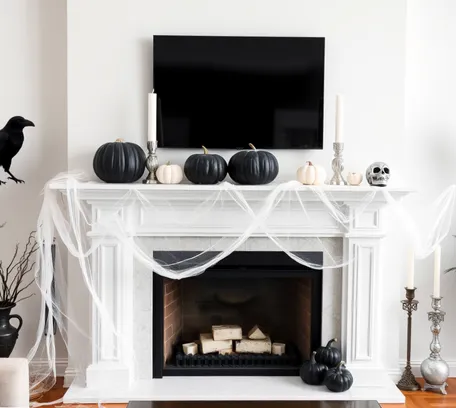 Spider webs are a must-have for any Halloween fireplace decor. Stretch faux webs across the mantel and down the sides of the hearth. Place large plastic or foam spiders in various corners of the webbing for added creepiness. Use oversized spiders for a dramatic effect, making it look like your fireplace is the center of a grand, eerie spider nest.