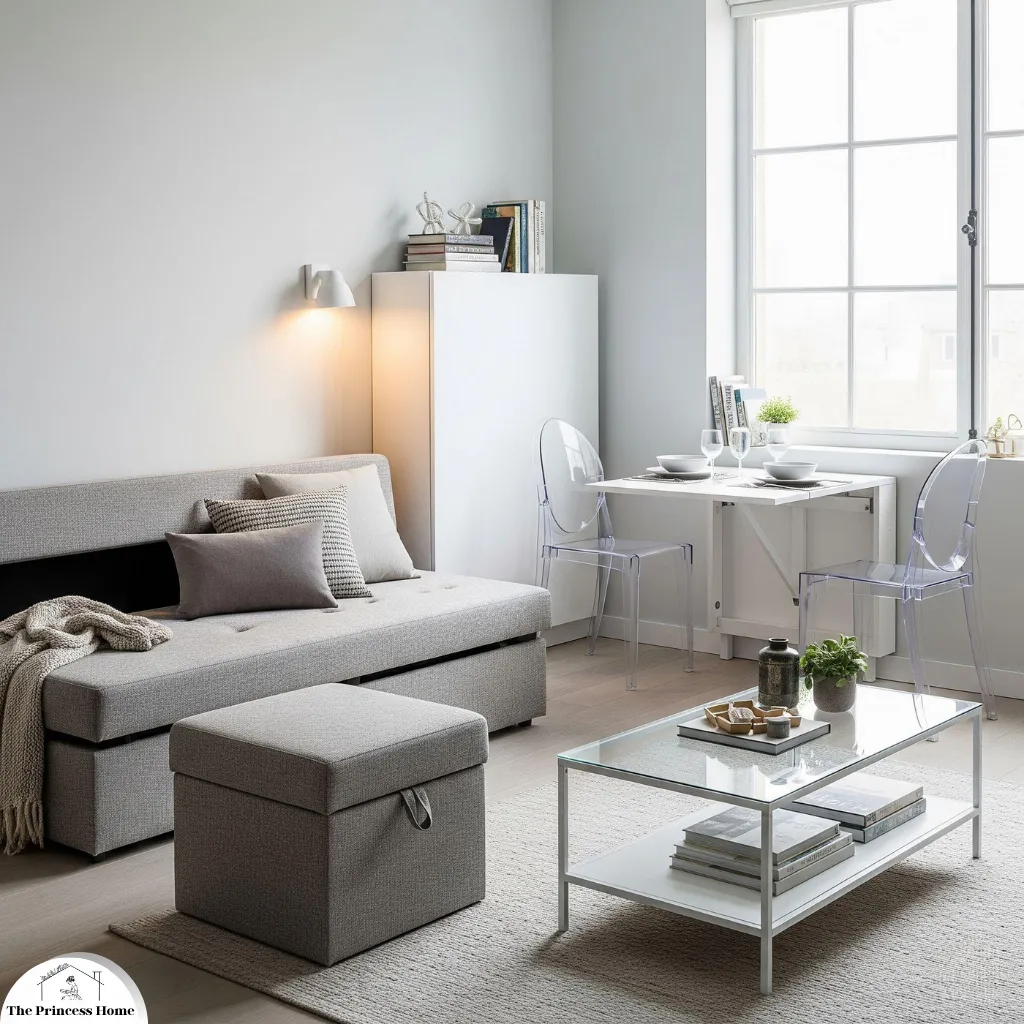 When decorating a studio apartment, choosing the right furniture is essential. Compact furniture is always the best option, as oversized pieces can overwhelm the room and make it feel cramped. Look for hidden storage solutions such as beds with built-in drawers, storage ottomans, or extendable tables that maximize functionality without taking up extra space. Transparent designs, like glass or acrylic furniture, are also excellent choices because they create an open and airy look, helping the studio feel larger and more modern.