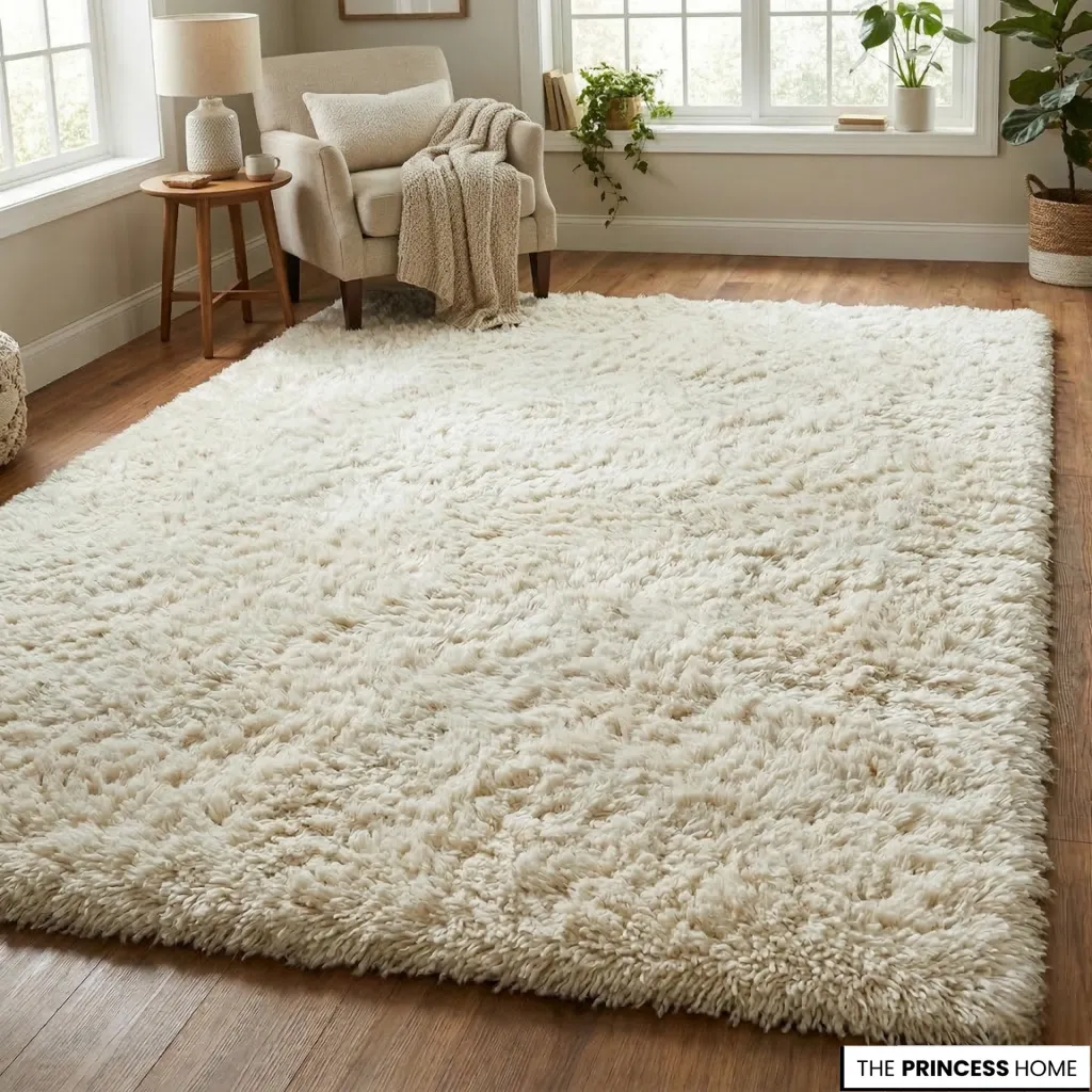 White high-pile rugs look luxurious and soft underfoot, but they can quickly become one of the most stressful decorative items in a busy home. Their light color highlights every speck of dust, pet hair, or footprint, and spills tend to soak deep into the thick fibers. Because debris gets trapped inside the pile, cleaning often requires professional extraction rather than simple vacuuming.