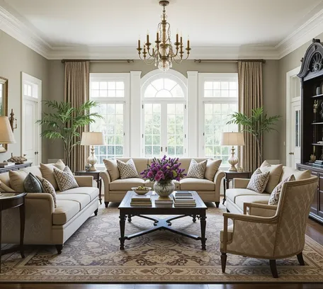 Symmetry is a key principle in traditional design, from the arrangement of furniture to the placement of artwork or mirrors. This balance creates a sense of order and harmony, enhancing the formal yet inviting atmosphere of the room.