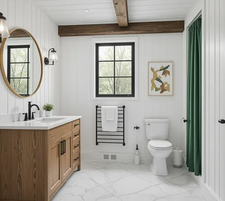 Q6: How can I mix modern and rustic elements in a farmhouse bathroom?