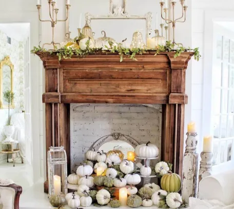 Your fireplace mantel is a focal point in your home, making it an ideal place to showcase your fall decor. Create a stunning display with a mix of vintage mirrors, framed botanical prints, and autumn wreaths. Flank the mantel with rustic candleholders and fill the space with an array of pumpkins, gourds, and pinecones for a charming and cozy feel.