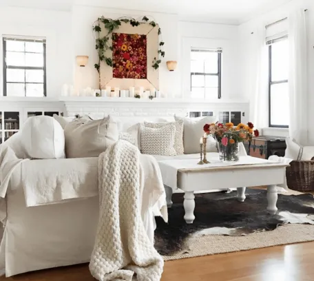 Answer: Arrange a comfortable seating area around your fireplace with plump cushions and warm throws. Lighting a fire on a cool autumn evening creates an inviting ambiance, making your rustic farmhouse style home even cozier.