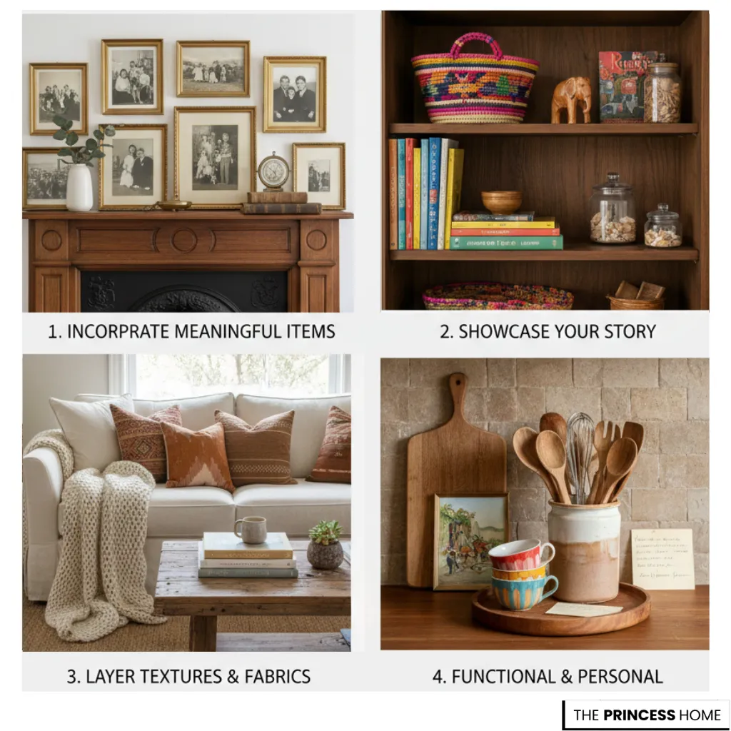 Personalized, Layered Decor turns everyday items into meaningful design features. Incorporate family photos, travel finds, and heirlooms as purposeful accents to make a space feel authentic and lived-in. This approach transforms potential clutter into curated, intentional displays that reflect your story and personality.