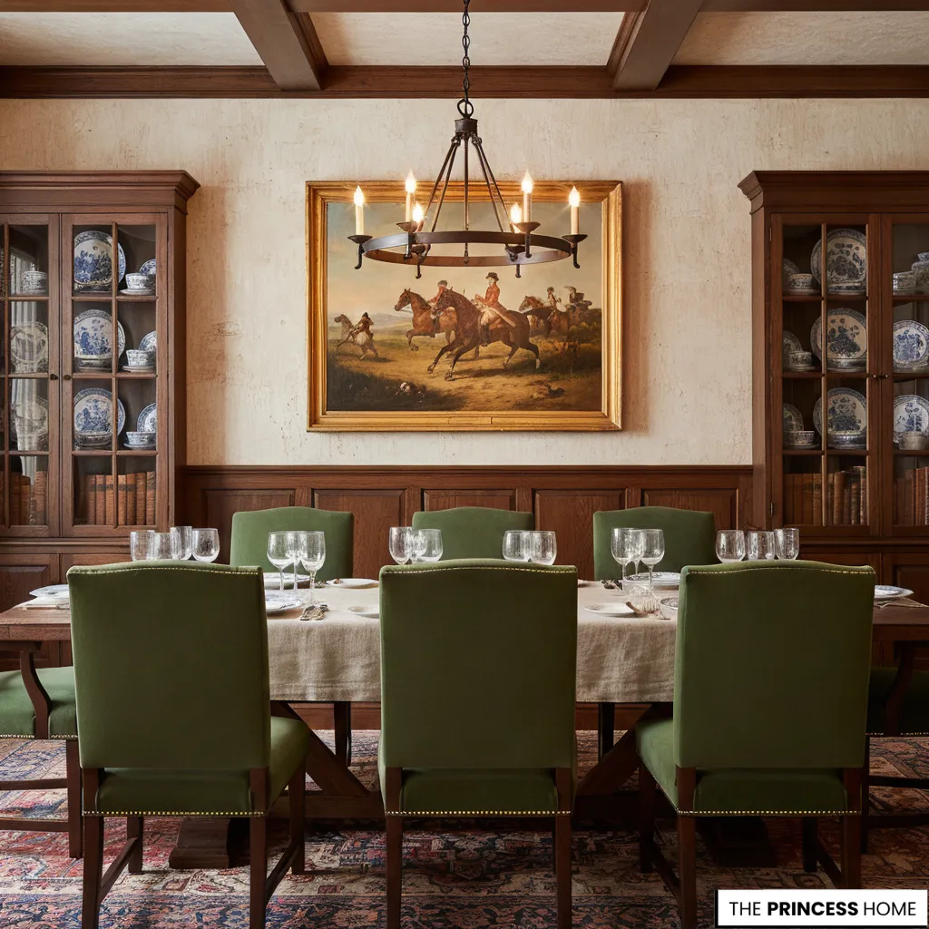 A Ralph Lauren dining room style is defined by timeless elegance, rich materials, classic furniture, and a warm, lived-in atmosphere. It focuses on quality, heritage, and comfort rather than trends, creating a space that feels sophisticated yet inviting.