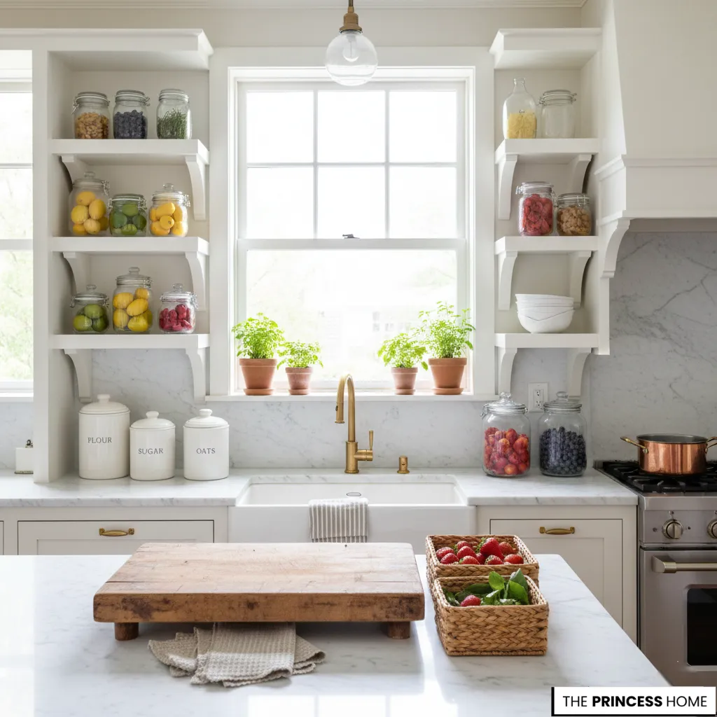 Ralph Lauren summer kitchen décor brings elegance to everyday function through light, natural details. Glass jars filled with citrus, fresh herbs, or colorful seasonal fruits add freshness and visual appeal. Linen towels, wooden boards, and wicker baskets introduce warmth and texture, while minimalist labels and open shelving create a clean, boutique-inspired summer atmosphere.