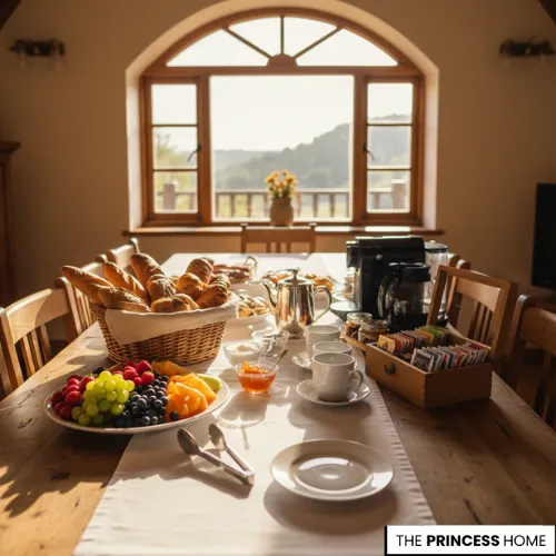 Make mornings effortless and inviting by setting up a self-serve breakfast station with essentials like bread, fruit, tea, and coffee. This thoughtful touch lets guests start their day at their own pace, creating a relaxed and welcoming atmosphere that shows care for their comfort.